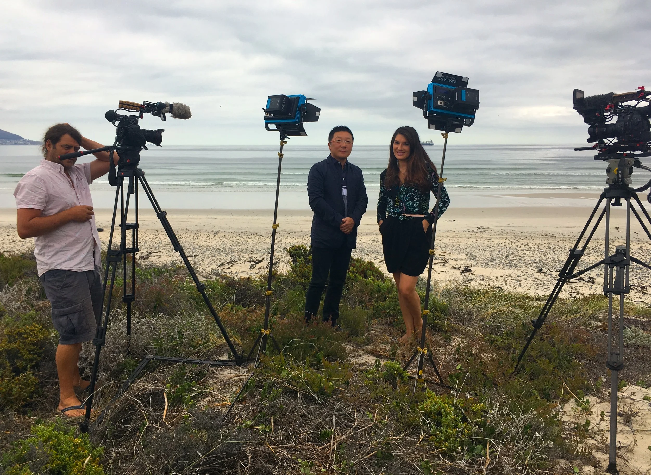 Filming the founder and Managing Director of China International Travel Agency of South Africa, Jacky Liu, with CNN Africa Business Correspondent Eleni Giokos at Sunset Beach in Blouberg for CNN Business Traveller. The subject this time was how Africa was engaging with the Chinese travel market. It was broadcast in March 2019.