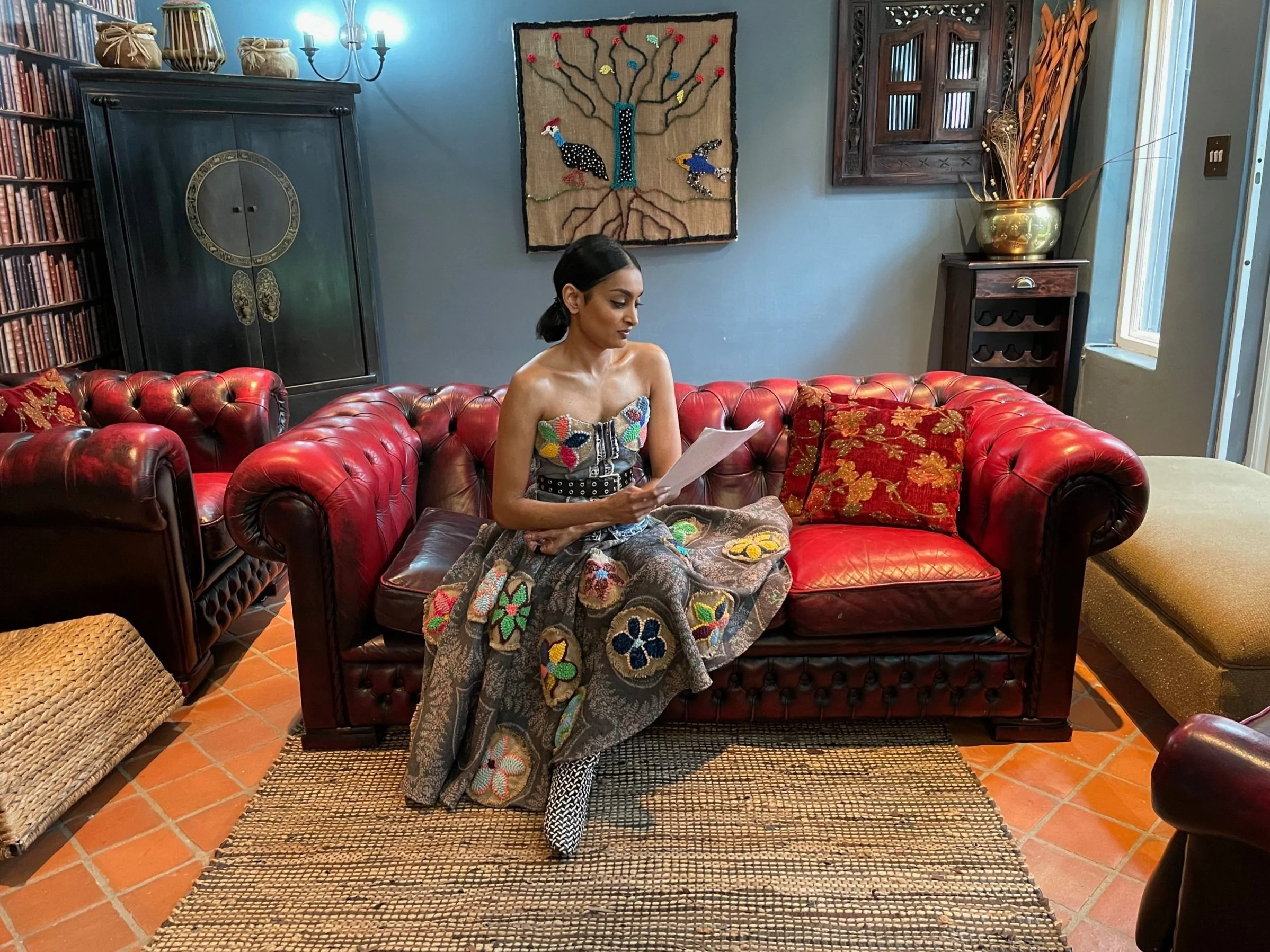 Sustainable fashion designer Shamyra Moodley prepping for an interview - one of the most inspiring women I have ever met, February 2022. Shot in location in her colourful home in Cape Town.